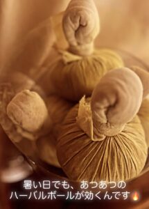 先週はカンカン照りの暑い日が多かったですが、ほかほかハーバルボールでゆるゆるになっていただきました☆